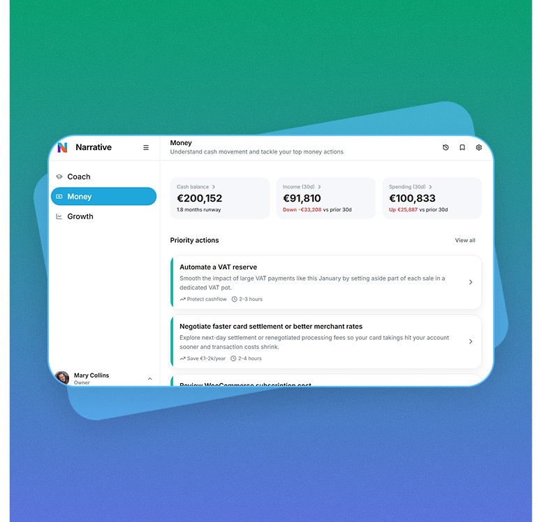 70% of small businesses say personalized financial guidance is critical. Narrative helps your platform deliver exactly that to your customers - at scale.